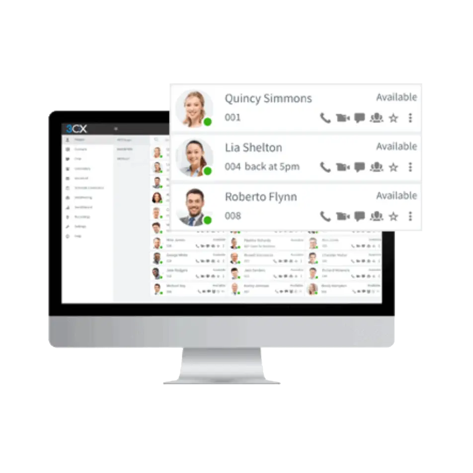3With 3CX’s modern, intuitive VoIP soft phone and smartphone apps, users have instant access to communication tools such as status, instant messaging, web conferencing, the ability to chat & talk with website visitors, fax & voicemail to email and more.